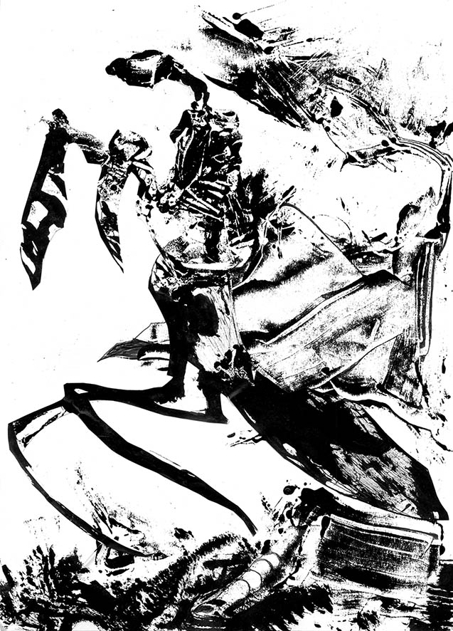 Born in Belgrade, Yugoslavia, moved to Belgrade, Serbia, without leaving his solitary confinement, where he lives and will die in his sleep from multiple overdoses of contempt, sleeping helpers, self medication, selfdestruction, cirrhosis of the heart and other natural causes. Tried everything he wanted; from publishing, editing, writing about and for, drawing, painting, printing, directing, composing, cutting and pasting, lettering, graphic novels, cartoons, comics, comic strips, videos, films… finishing seems to be the problem. did everything backwards. sometimes it worked. always in groups, still existing, studiostrip, kosmoplovci; now active in novo doba festival, matrijaršija culture center. ološ crew… plans to never leave his room. hobbies: sleeping, laying in bed, very good or bad tv, destroying broken robots, contemplating, not reading, not collecting, minimum physical movement, breathing, planning… best years are yet to come, not so many, though. In it fromever, from forever, as fanatic, unselective, addicted user, massive consumer, broken publisher, ex editor, loser seller, distributor, not bad screenplayer, somewhat better inker, very good brusher, best corrector, sinfull letterer, malicious reviewer, passive activist and counterproductive popularizer of this, still unexplored forms of graphic storytelling and universal expression. published in magazines, books, fanzines, komikazes; founder and establisher of numerious organisations, festivals, exhibitions, workshops, exibited in museums, national libraries, galleries and other holes or dumps of Balcan. One of three original members of the secret society not to speak their name, trapped in the body that’s not really his, collector of broken toys, mostly robots and animals/including people, broken maschines, mostly half functional or of the changed purpose, like transforming sound into light, broken cameras that produces films by itselves, 8mm combining with broken old recalibrated webcams. other interests are klassicks, industrial, military design, maschines and electronics exhibits, essential turbo gotic, noiseundustrial and human errors, platonic romantic and voyeristic erotismus and tanatology. he wont be long…